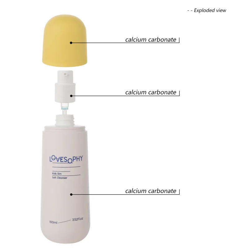 The bottle is made from calcium carbonate. It is lightweight and durable. It protects the contents inside. It has good environmental properties. It aligns with sustainable goals. Calcium carbonate is easy to process. It allows for different color and finish options. This helps you create a unique brand identity.