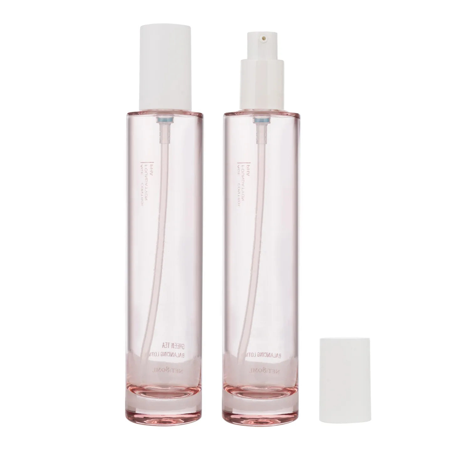 Designed for high-end skincare and fragrance applications, this cylinder pink glass pump bottle comes in customization colors to align with your brand’s vision—opening up infinite creative options.
