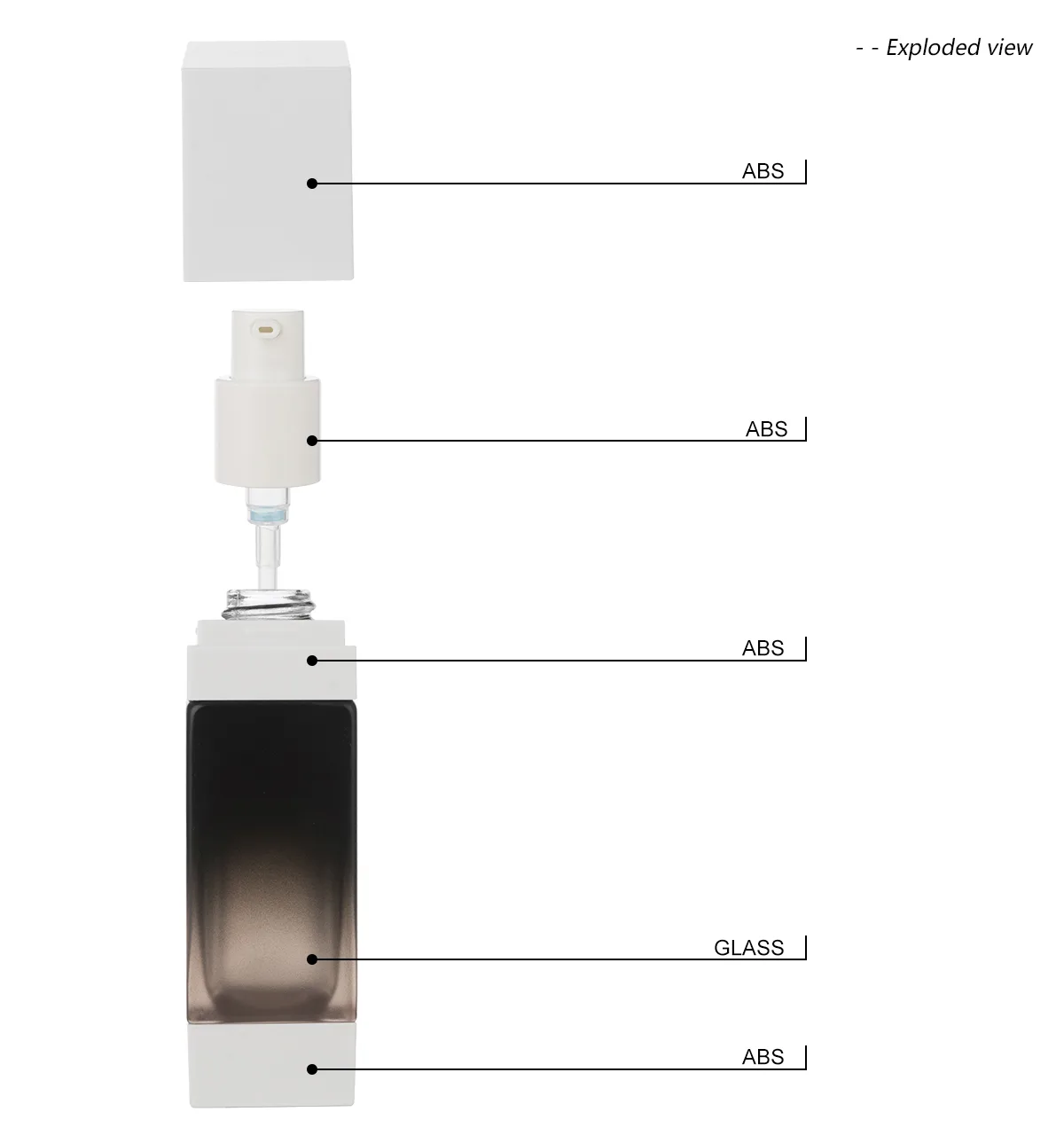 A stylish square glass lotion pump bottle that exudes fashion and mystery. The ABS and glass construction offers lightweight durability and excellent sealing. Designed specifically for luxury fragrances and premium skincare formulations, this signature piece provides brands with unparalleled customization opportunities to articulate their distinctive identity.