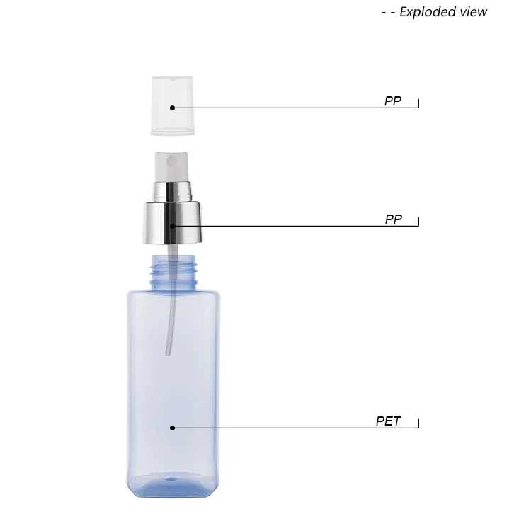 Square Blue PET Plastic Spray Pump Bottle