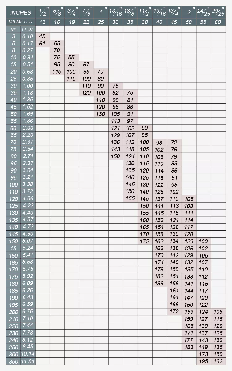 | Capacity | 5ml (0.17oz), 10ml (0.34oz), 30ml (1oz), 50ml (1.7oz), 100ml (3.4oz), 150ml (5.1oz), 200ml (6.8oz), 300ml (10.1oz), 350ml (11.8oz) |