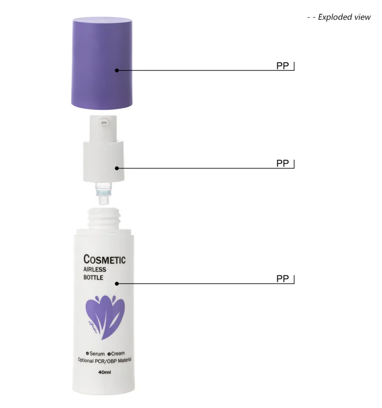 Explore our recyclable PP airless bottle. It comes in 30ml, 40ml, 50ml, 80ml, and 100ml sizes. You can customize it based on your needs. The bottle has an efficient airless pump. It is made for eco-friendly skincare packaging. It uses recyclable materials to reduce environmental impact and support sustainability. The airless design prevents oxidation. This keeps the product fresh and active.