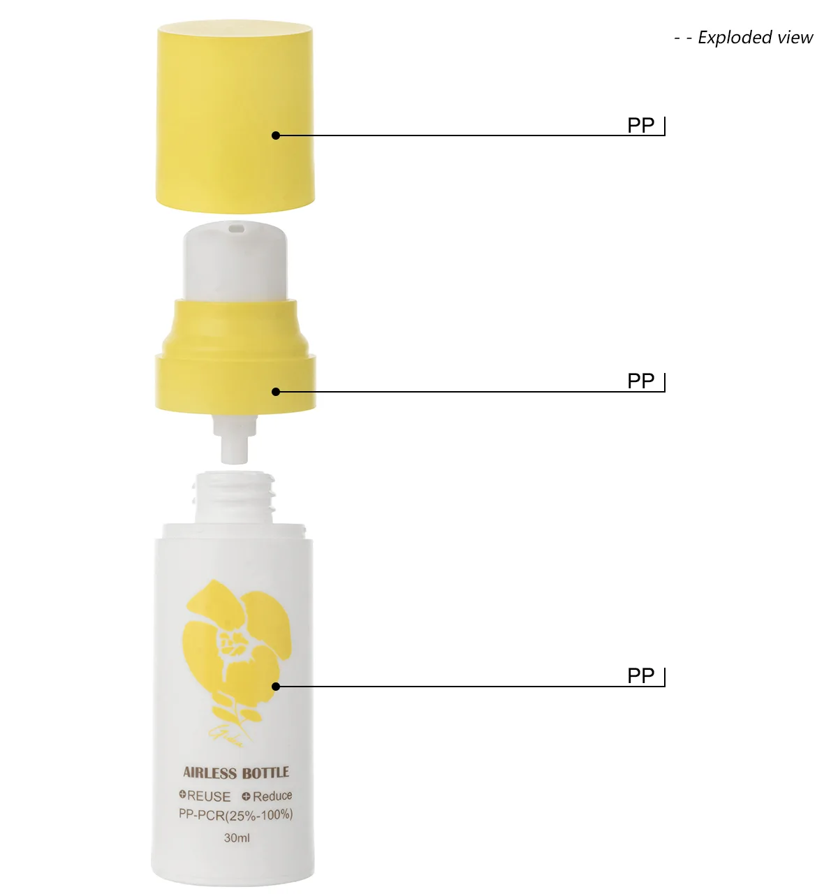 Mono Material PP Airless Pump Bottle With Yellow Cap