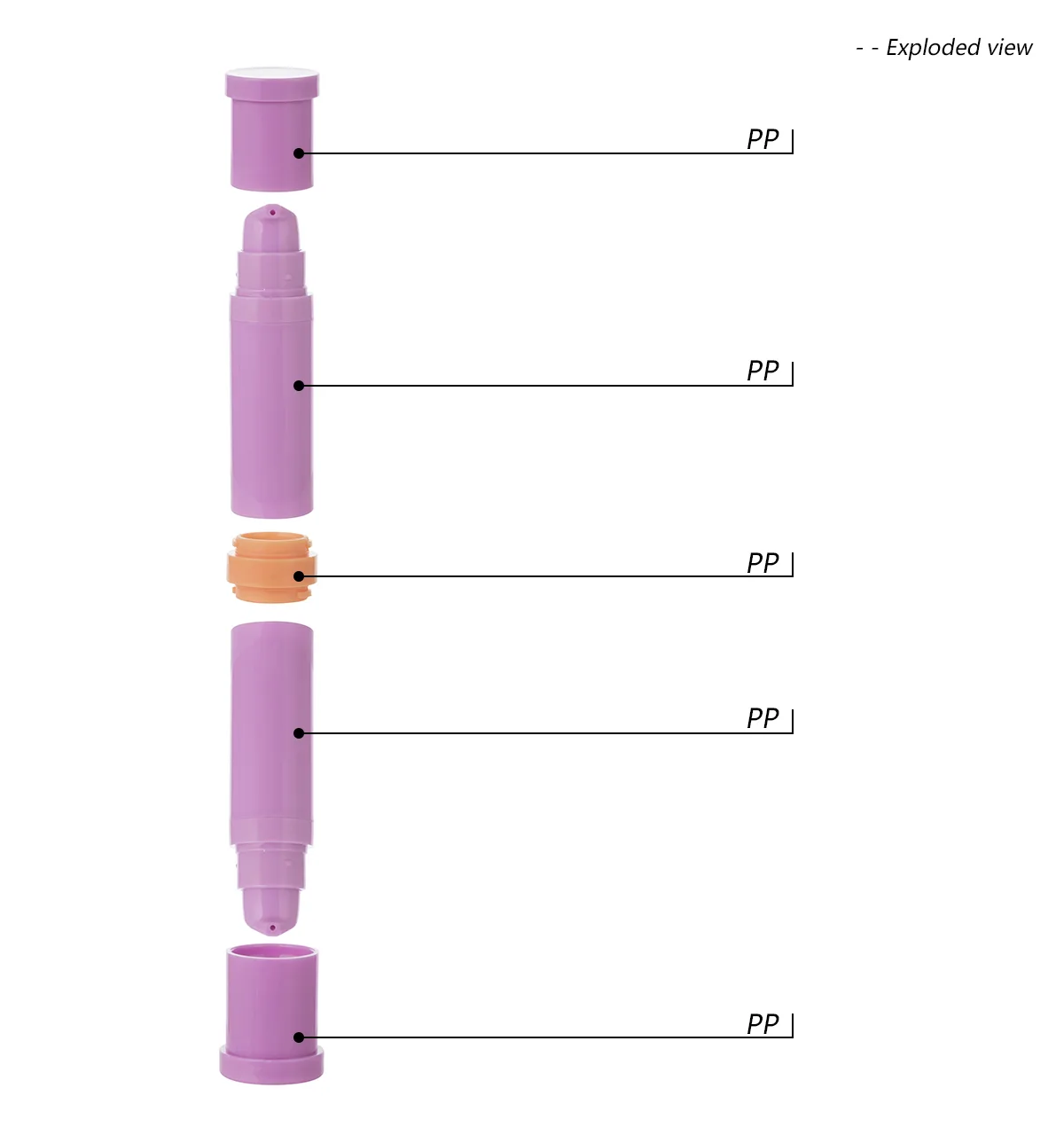 The airless design prevents air from entering. This reduces product oxidation and keeps the formulation fresh. The dual-head design makes it easy to switch between products. Its reusable design reduces packaging waste and helps the environment. It has an elegant purple exterior and customizable surface treatments. This increases market appeal and enhances brand image.