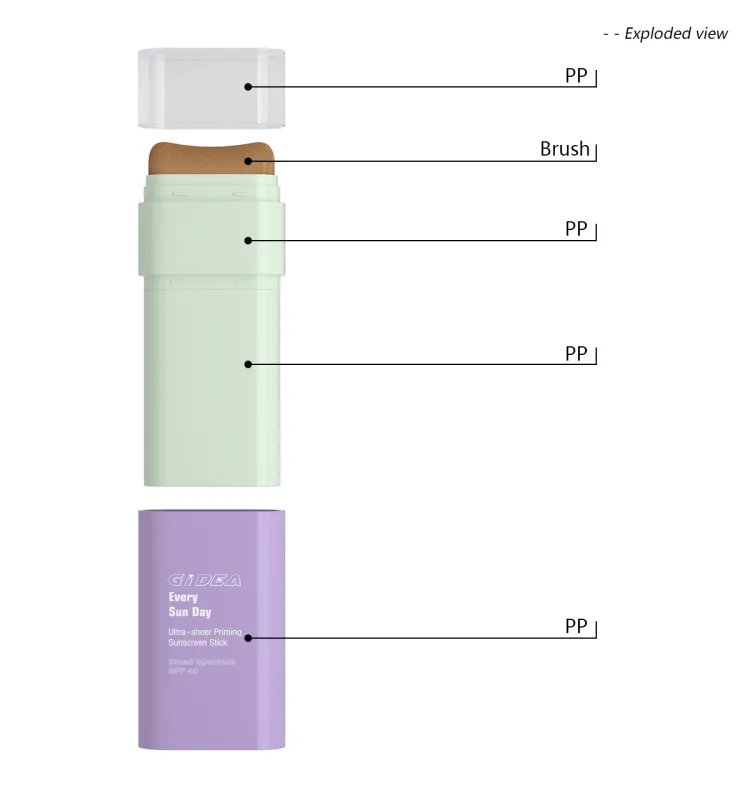 This brush-tipped stick container is for blush, highlighter, and foundation. It is easy to carry and practical for quick makeup application any time. It is good for busy lifestyles. The brush head helps apply the product evenly and avoids streaks for a natural finish.