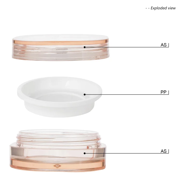The shell of this clear jar is made of clear AS plastic, and the product inside can be clearly seen. The inner bowl is made of durable PP material to ensure secure storage. The elegant design makes this jar an ideal packaging for loose powder, suitable for both outings and daily use, making it easy to touch up anytime. Various processes can be customized according to brand requirements.