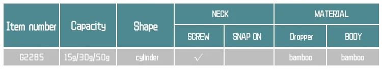 This glass dropper is our take on a classic Boston round shape, the most exciting part is full cover with real bamboo. As we all know, more and more companies in this highly competitive industry wants to get “back to nature”. Made from renewable sources, bamboo is one of the best options for plant-based packaging, it’s one of the fastest growing plants in the world. Like trees, bamboo is renewable but grows much faster than hardwood. One species can grow up to 35 inches in one day! It can reach maturity and be harvested in 3–5 years. This is a great option for oils, serums and even liquid foundations with a shape that never goes out of style! We can print on the bottle also can engrave logo on the bamboo part !