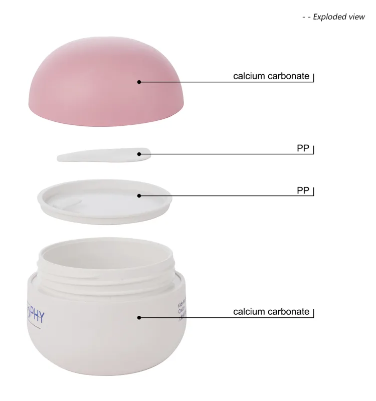 This round cream jar features a unique design and high quality calcium carbonate material, compared with traditional plastics (such as PP/PE), the calcium carbonate composite material is more easily degradable under certain conditions, reducing the burden on the environment. The natural mineral particles give the surface a fine frosted touch and enhance the high-end visual experience, perfect for storing children’s moisturizers, skin care products and cosmetics. We offer a variety of process options to enhance your brand’s impact!