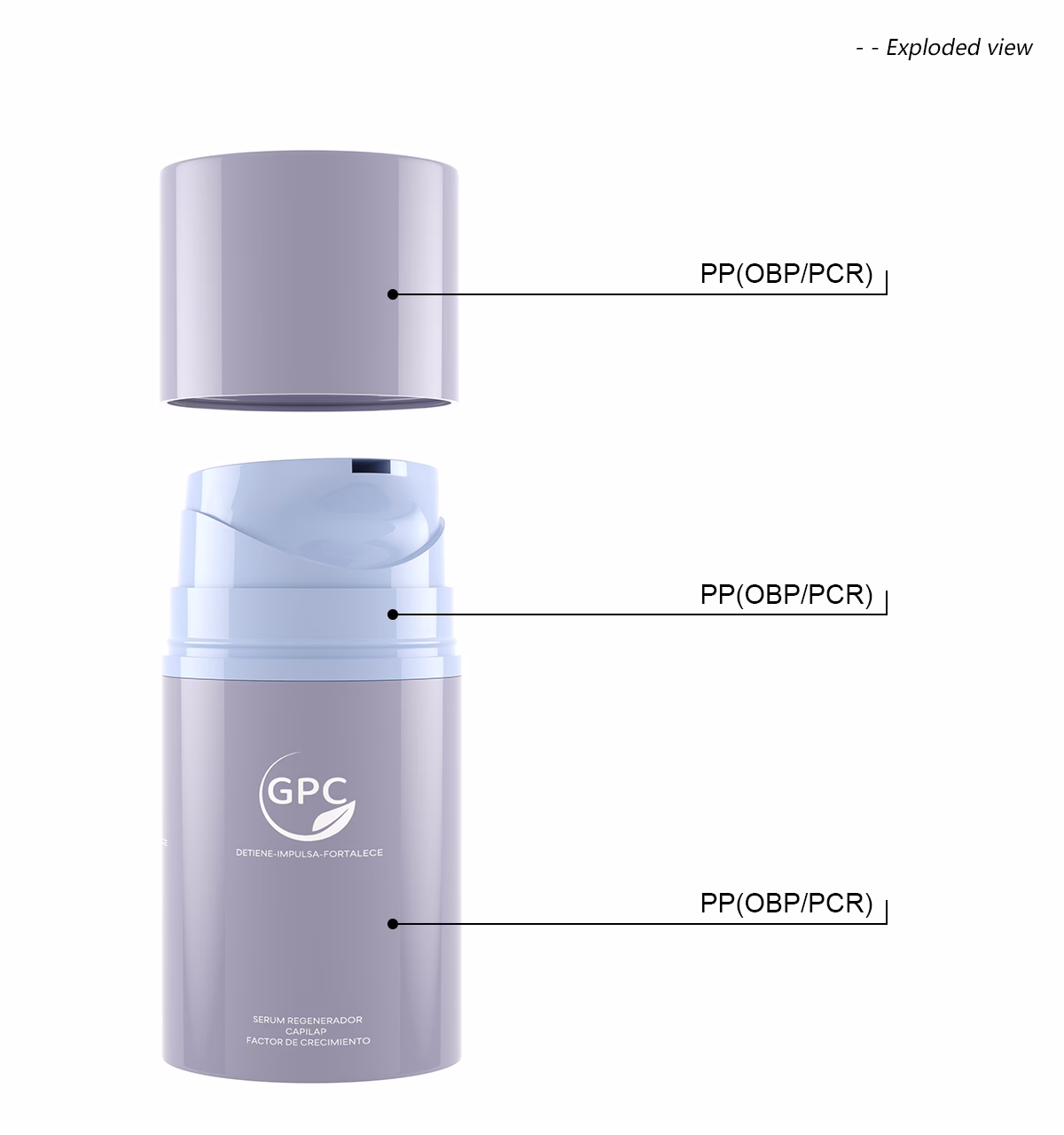 This airless bottle with different sizes meets the concept of environmental protection. Thick bottle body is particularly textural, we can use PCR/OBP-PP material with high quality PCR/OBP-PP pump head to make the whole product fully in line with the current concept of environmental protection. With the customized printing on the bottle, it will surely be a product that attracts people’s eyes.