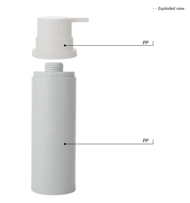 With its clean and simple design, this bottle is a perfect packaging solution. The cylinder light gray bottle and white pump head create a stylish and elegant look. The easy-to-use pump dispenser and durable construction ensure a premium experience. Combining aesthetics and practicality, this bottle is suitable for various brands.