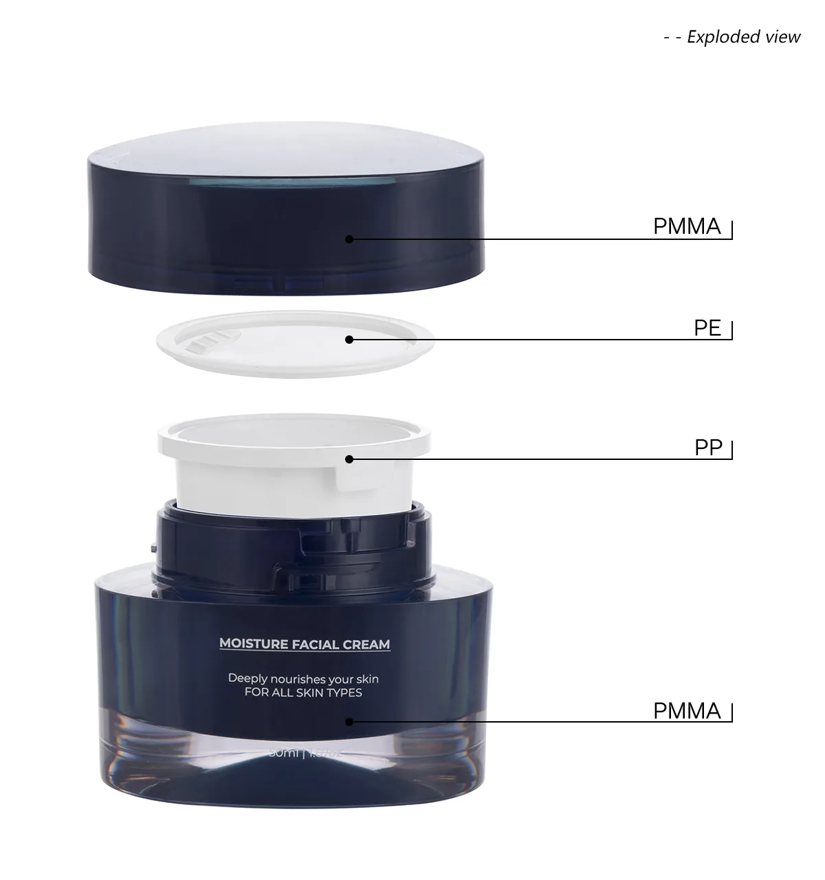 The Double Wall cream jar features a simple,and overall modern look.The outer jar material is PMMA, with a diamonds bottom design, elevate your brand’s perceived value by upgrading the visual appeal and utility of your packaging. These jar with a high-quality to protect your products or valued formula from oxidation.