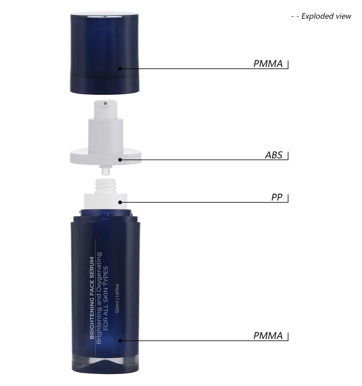 | Cap | Pump Head | Collar | Out Bottle | Inner Bottle |